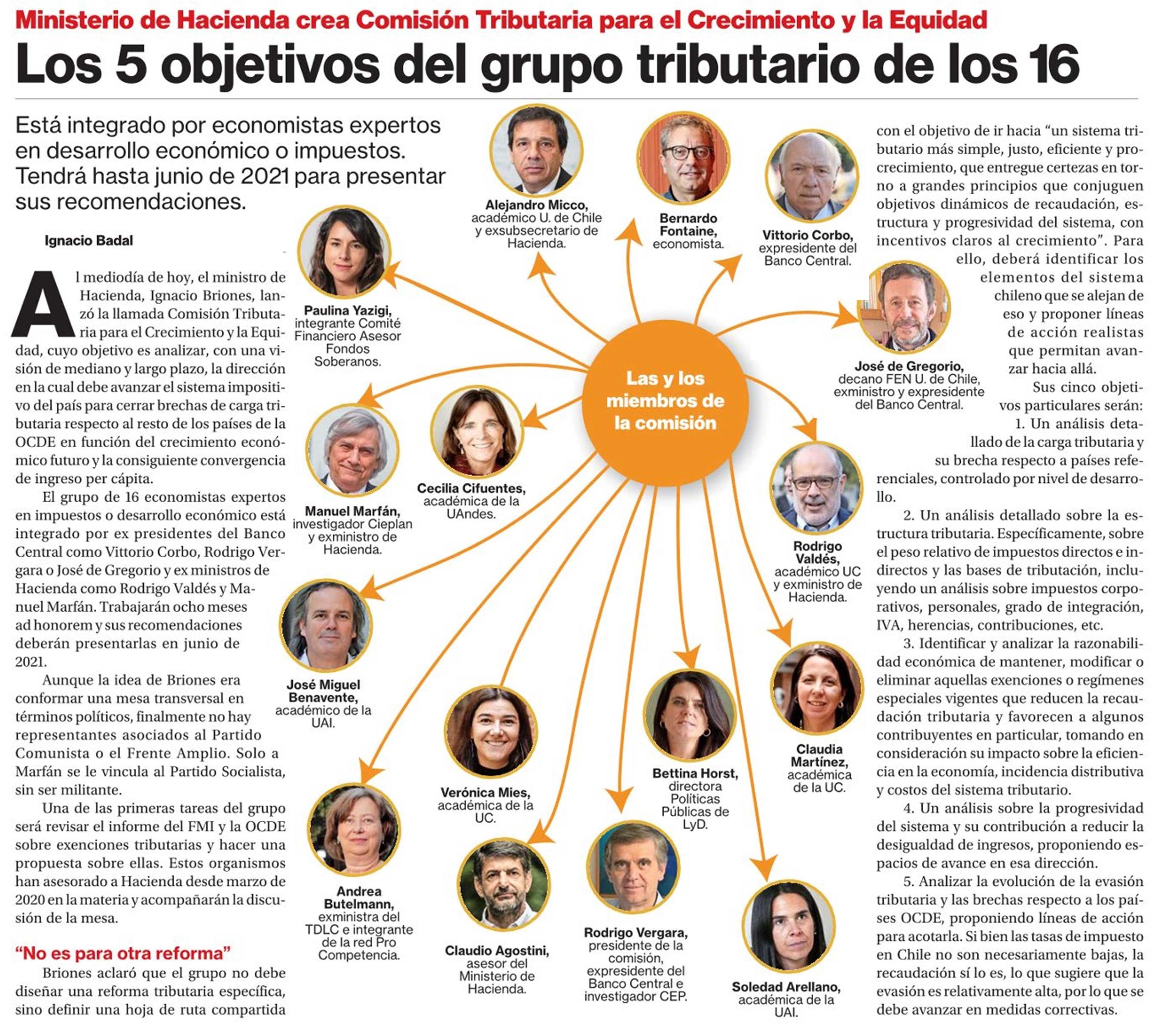 - La Segunda: “Los 5 objetivos del grupo tributario de los 16”, Rodrigo Vergara, 22/10/20
